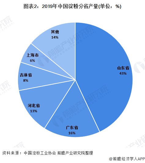 从地区情况看,淀粉糖生产主要集中在原料产区。山东省、广东省、河北省和吉林省的产量超过百万吨,位居前四位。2019年上述四省淀粉糖产量分别为613.34万吨、230.18万吨、183.55万吨和109.10万吨,其中山东省占据全国产量的43%,远高于广东、河北和吉林省的16%、13%和8%。