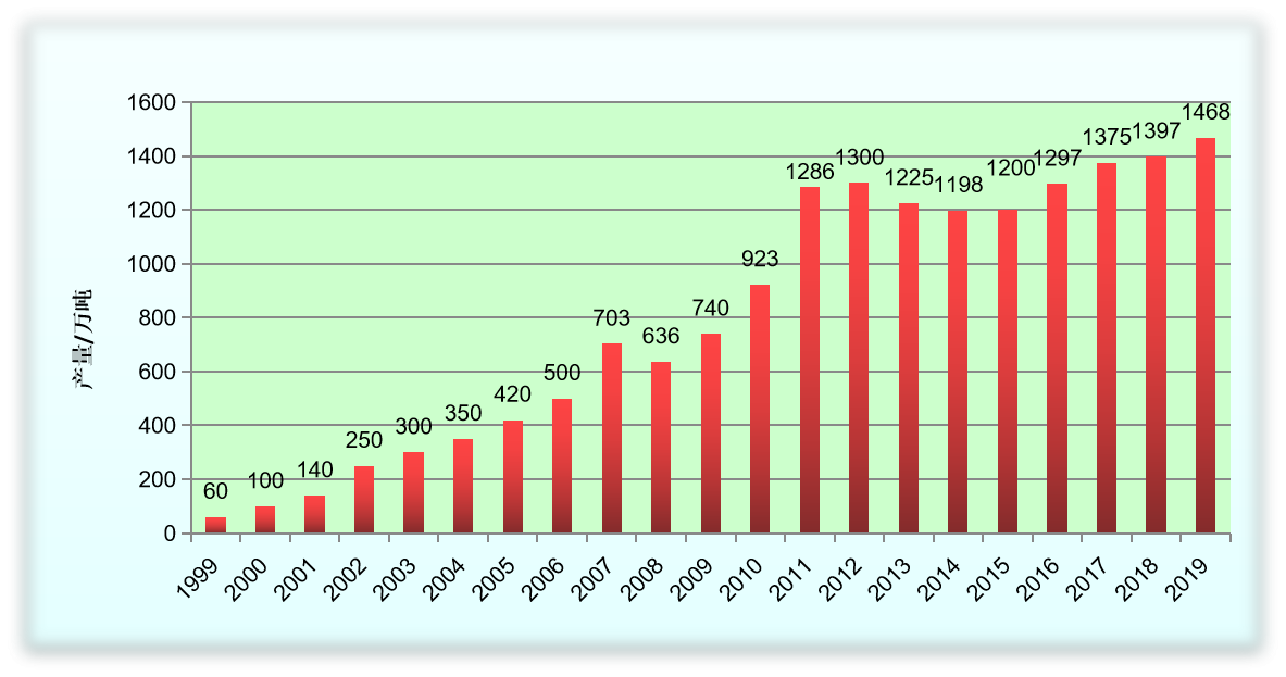 1999年-2019年我国淀粉糖产量