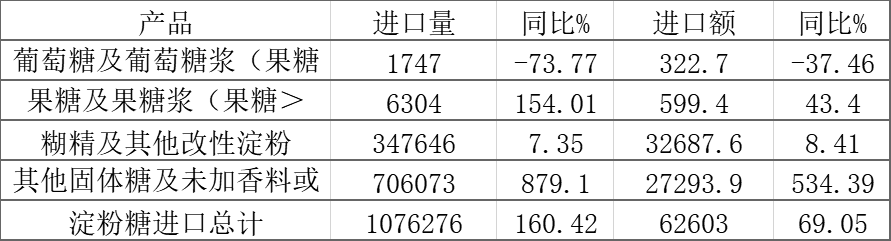 2020年1月-9月淀粉糖进口情况