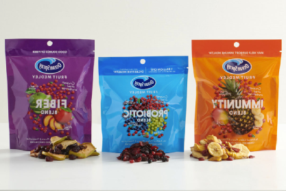Ocean Spray将推出Ocean Spray Fruit Medley功能性干果混合物系列零食,共有免疫、纤维、益生菌三个系列。免疫混合物包括Craisins蔓越莓干、芒果干、菠萝干和香蕉片。据该公司称,每1/4杯份包含250毫克β-葡聚糖,以增强免疫力。纤维混合物以葡萄干、苹果干和油桃为特色。每份提供4克纤维和每日推荐摄入量14%的维生素。益生菌混合物将Craisins蔓越莓干与蓝莓干、樱桃干、葡萄干混合在一起。每份包含10亿个CFU的益生菌。每个小袋的零售价为3.99美元。