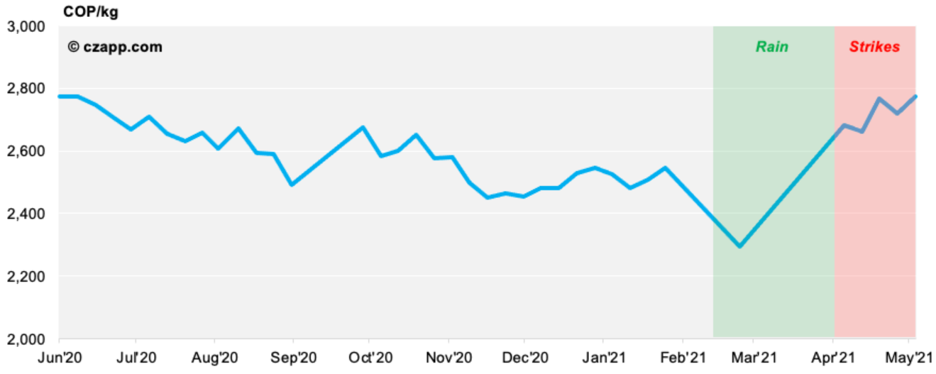对国内糖市场造成的结果是,哥伦比亚国内糖价正逼近一年高点。