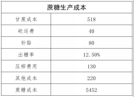 l 原料采购成本:优质良蔗:520元/吨;普通:490元/吨;由于良种占比90%以上,均价518元;砍运费40元/吨,补贴均摊到每吨80元,累计约640元/吨。