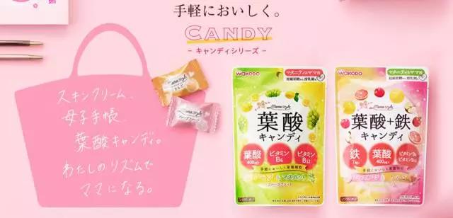 在日本和台湾,还有许多强化铁元素的糖果。日本Wakodo(和光堂)就曾推出强化了叶酸和铁元素的葡萄柚和苹果风味的糖果,专为孕妇设计,并声称每两粒中就含有每日推荐摄入量的铁、叶酸、维生素B6和维生素B12。