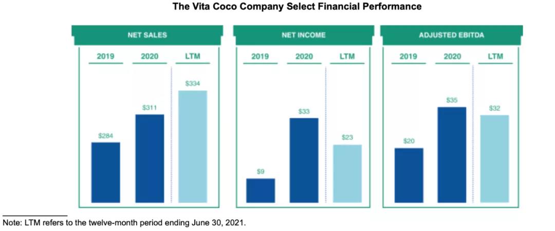 根据招股书数据,2020年,Vita Coco净销售额为3.11亿美元,净利润为3269万美元,而2019年同期净利润仅942万美元。