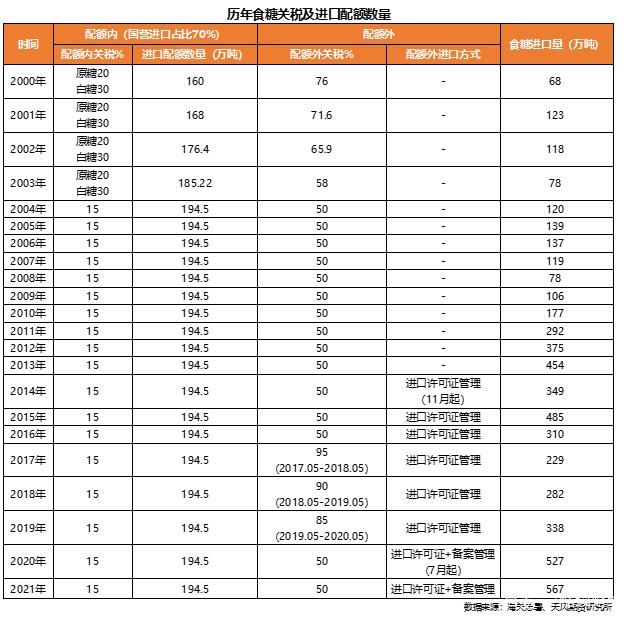 期间,2003年明确规定对食糖进口实施关税配额管理制度。