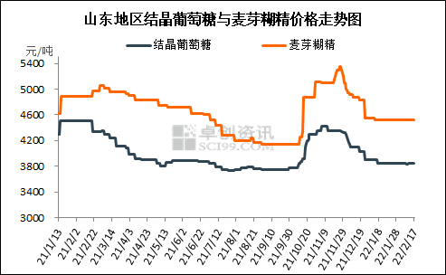 本周淀粉糖各产品市场价格基本维持稳定趋势,市场购销恢复缓慢,主要企业谨慎观望市场为主,对价格调整较为谨慎。具体分品种来看:截止到本周四,糖粉类本周结晶葡萄糖山东市场均价为3850元/吨,环比上周上涨12元/吨;本周黑龙江地区结晶葡萄糖出厂均价3511元/吨,环比上周下滑14元/吨。本周结晶葡萄糖市场价格主流稳定运行,个别企业根据自身库存情况小幅调整,市场观望氛围浓厚,下游整体需求恢复进度偏慢。本周麦芽糊精山东地区出厂均价为4525元/吨,与上周持平。本周市场成交逐渐增加,深加工企业对价格调整较为谨慎,实际成交一单一议为主。