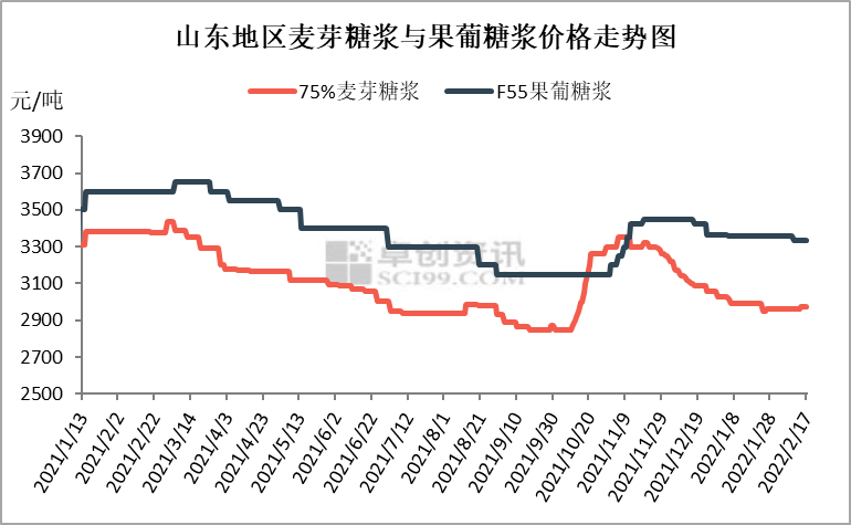 液糖类:本周麦芽糖浆市场价格窄幅调整,麦芽糖浆山东市场均价为2968元/吨,环比上涨8元/吨。本周市场购销陆续恢复,伴随着下游食品行业复工复产,市场询价逐渐增多,部分企业根据库存情况灵活上调价格试探市场接受程度。本周果葡糖浆市场大致维稳运行,F55果葡糖浆山东地区市场均价3335元/吨,较上周均价持平。节后果葡糖浆下游需求淡季,市场新签订单补进有限,但目前原料价格维持相对高位,成本支撑下,企业调价谨慎,现稳价观望市场成交跟进为主。