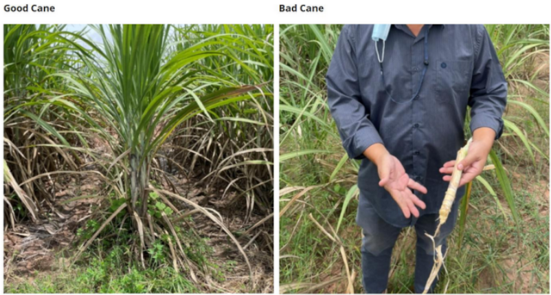 因此,甘蔗表现差异很大:我们观察到有非常健康的新种植甘蔗,也有受损、发育不良的宿根甘蔗。