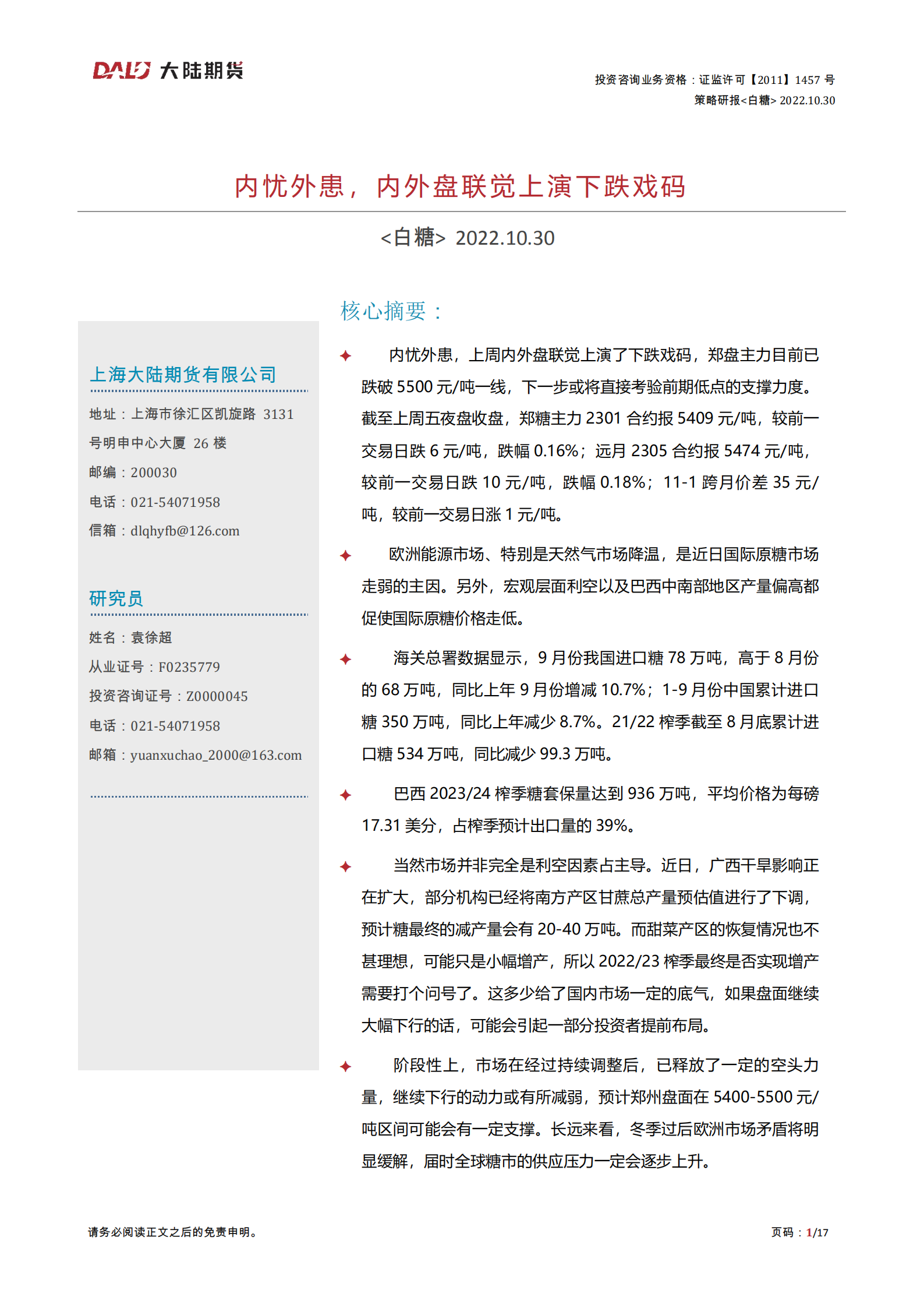 大陆期货1024-1028:内忧外患,内外盘联觉上演下跌戏码