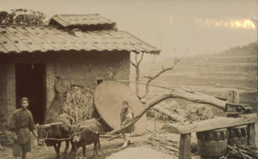 反映十九世纪广州附近榨糖技术的《中国制糖图》,用画图的直观形式记载了二辊轴榨糖机,“石制辊装在石制地座中,以石桩固定,齿轮一排,为直齿”[1]。
