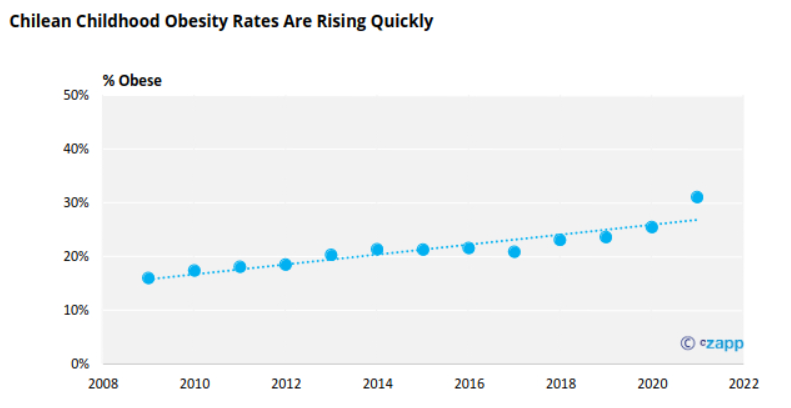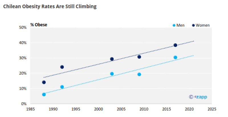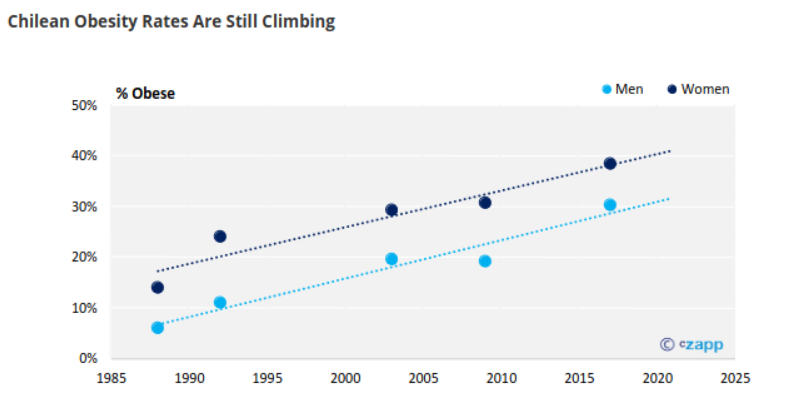 尽管糖和HFCS的消费量在近20年前达到顶峰,但智利的肥胖率仍在继续攀升[14]。可悲的是,我们可以找到的成年人的最新数据可以追溯到2017年,即2014-2016年引入糖法规后不久。