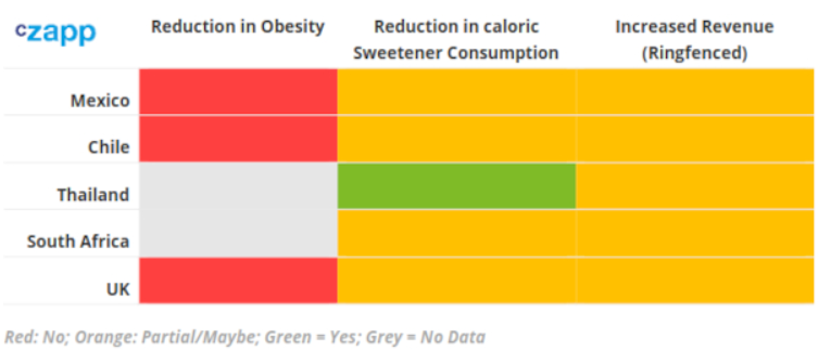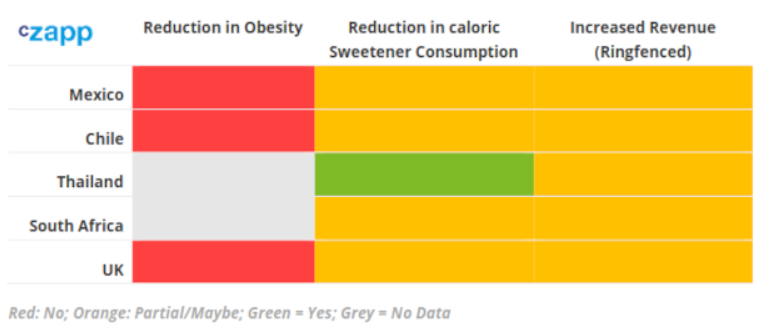 因此,我们可以对泰国的糖税和法规进行评分如下:
