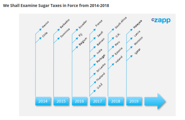 在2010年代,世界各地实施了一波新的糖税和法规。这些往往被证明是对抗肥胖和相关非传染性疾病的一种方式。