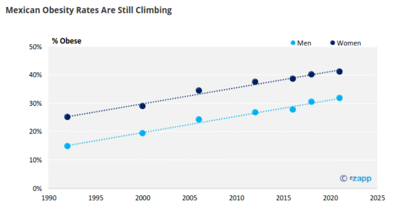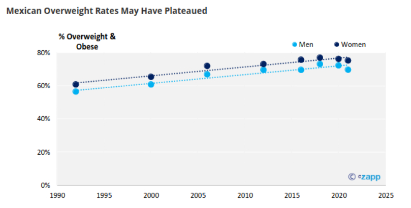 尽管糖和HFCS的消费量在近20年前达到顶峰,但墨西哥的肥胖率继续攀升[2,9]。然而,超重率在过去十年中似乎已经趋于平稳。我们不知道为什么超重的人比肥胖的人更善于控制体重。