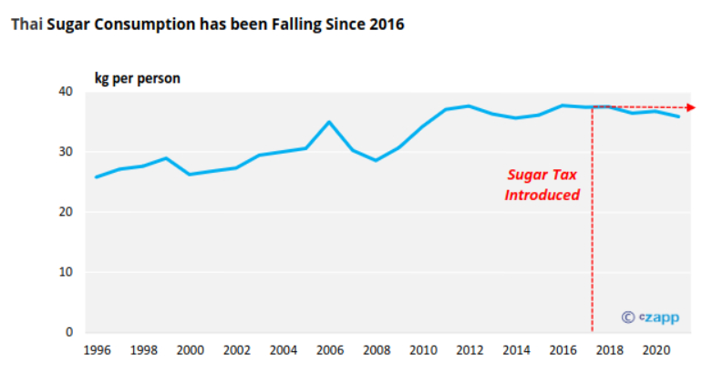 关于糖税对泰国软饮料消费影响的研究很少。一组研究人员使用统计模型得出结论,该税可能会使软饮料消费量减少14%,但作者自己承认,由于没有泰国可用的经验数据,这些输入是基于对全球数据的文献回顾[16]。他们还假设没有替代效应,这项研究完全是理论性的。