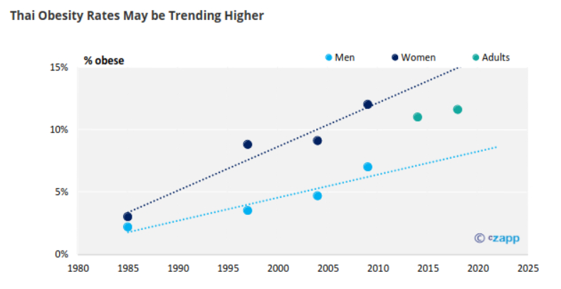 18)肥胖研究进展,1991:649-53;Tanphaichitr V, Kulapongse S, Pakpeankitvatana R, et al., 泰国城市肥胖患病率及其相关风险, https://data.worldobesity.org/country/thailand-214/#data_prevalence, 访问 3/2/23