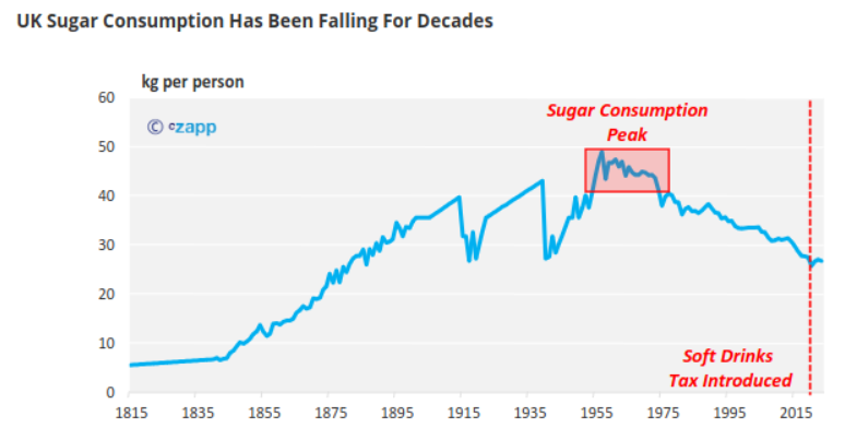 引入糖税是为了减少糖的消费,从而改善人口的健康状况。它被设计为每 2 年增加一次,为期 6 年。然而,政府一再推迟新的更高税率的到来。