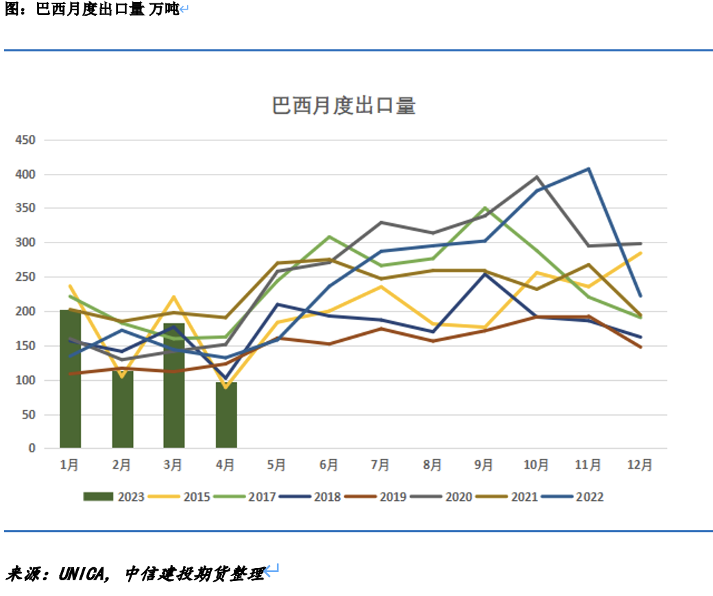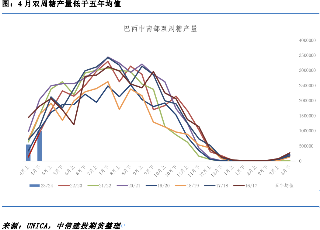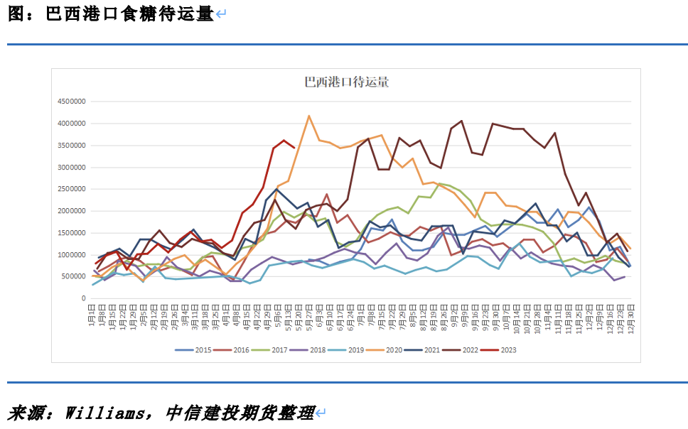 2、巴西开榨之后,原糖迎来季节性回调,5月天气利于开榨,巴西生产进度加快,但当前巴西处于生产前期,难以形成大量供应,未来还需关注港口的情况。