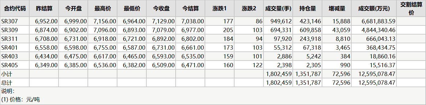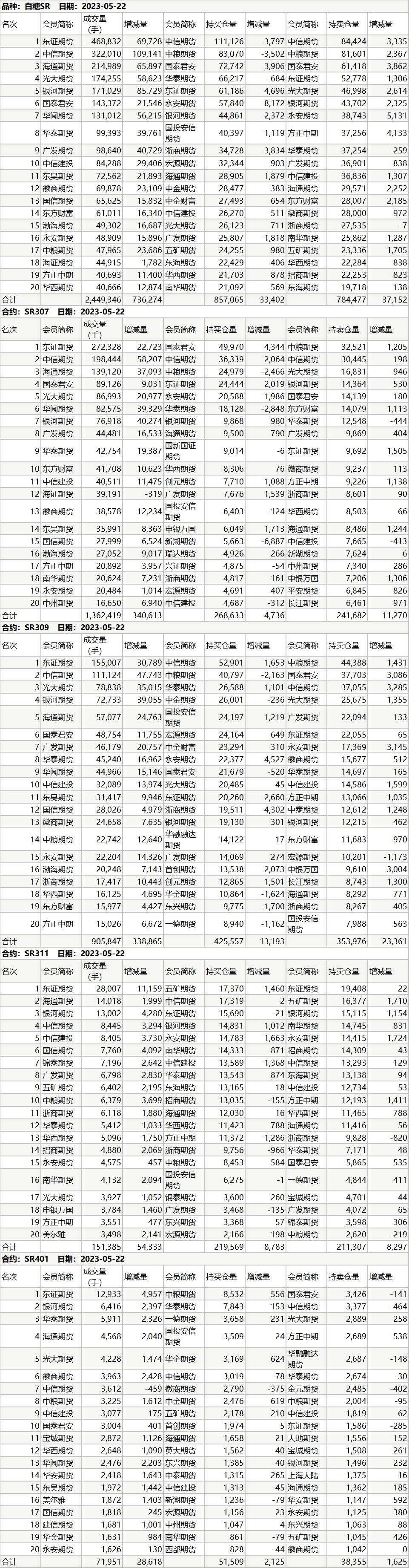 20230522郑商所白糖期货数据