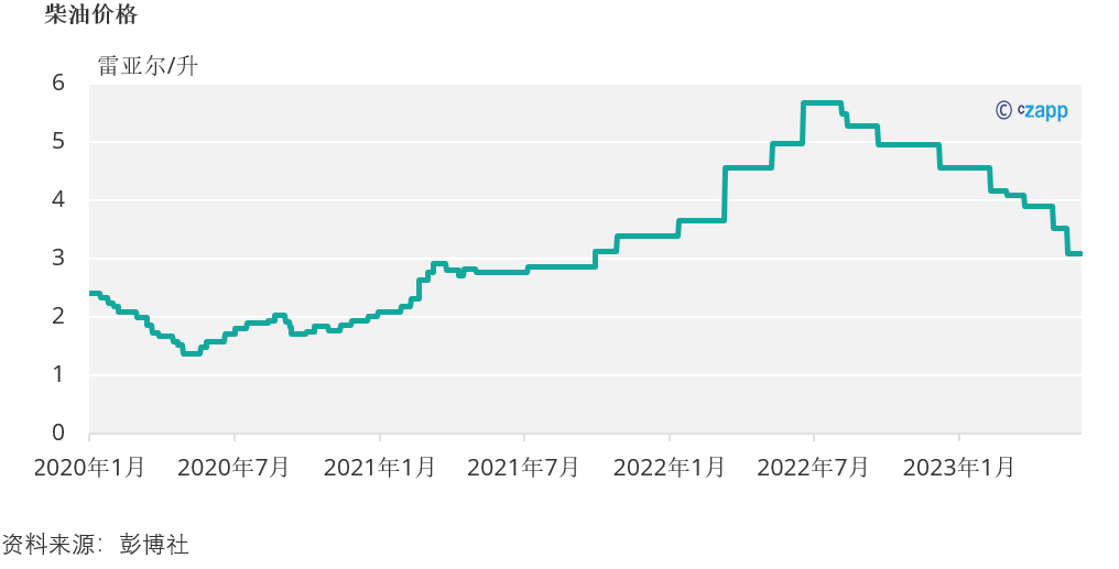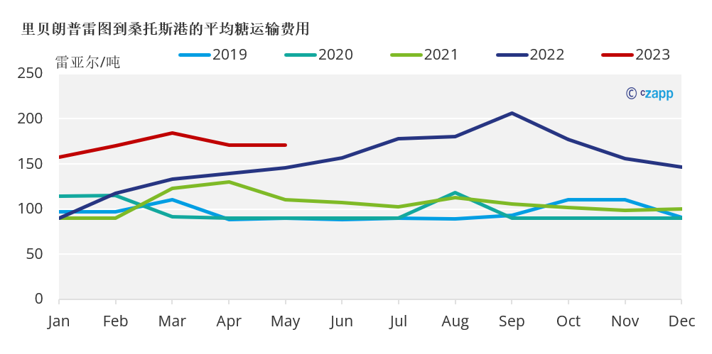 该现象背后的影响因素之一是:自4月份新榨季开始以来,柴油价格已经下降了21%。燃油价格约占运费的40%,因此价格下降会产生重大影响。