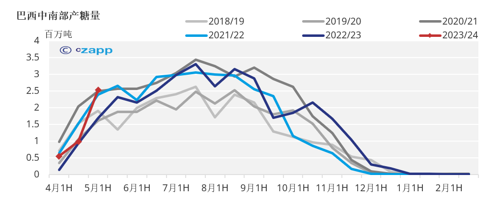 另一个因素是糖业生产的步伐缓慢。由于4月份的降雨推迟了收获期的开始,糖的生产到5月才加快步伐。