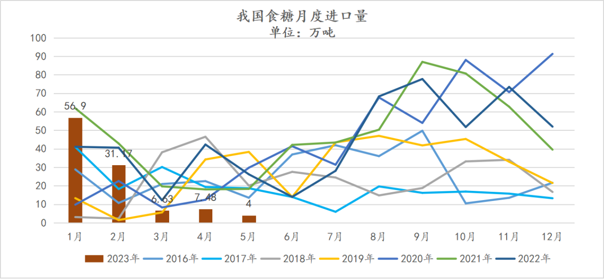 (一)5月进口食糖4万吨,同比减少22.2万吨