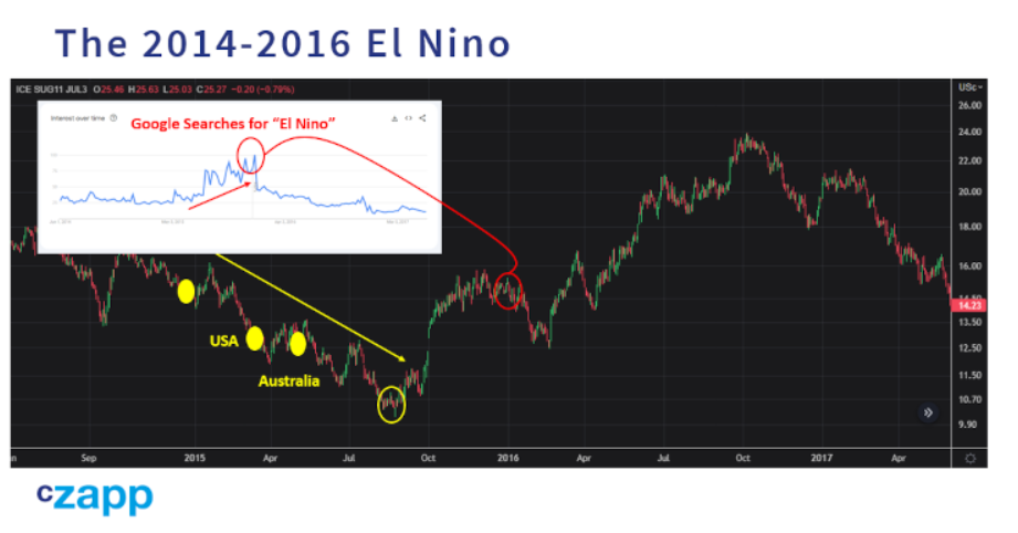 正如我之前所说,厄尔尼诺现象是不可靠的指标。仅仅因为今天的新闻充斥着厄尔尼诺新闻,并不一定意味着价格会大幅上涨。