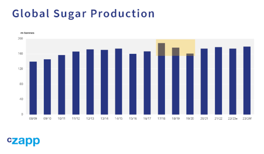天气确实导致澳大利亚、泰国、印度和巴基斯坦的食糖产量下降,到2019/20年度,这些国家的食糖产量总计约为1500万吨。