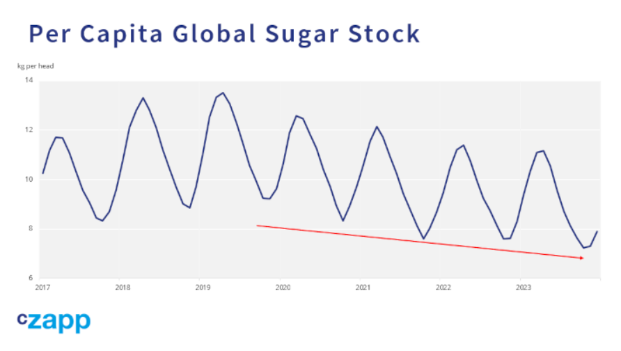 世界上的糖库存已经降至低位,我们都处于不利的地位,无法应对任何作物短缺。这就是市场如此动荡的原因。