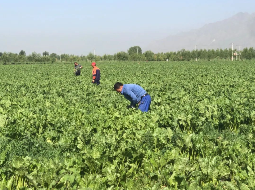 直接负责这片甜菜种植的骑士集团全资子公司——包头市骑士农牧业有限责任公司农业队长黄立刚说,甜菜种植和收获都是机械化作业,不过进入7月份,甜菜已经长得很高,甜菜根也初步长成,加之现在地里的草并不太多,人工除草是更好的选择。