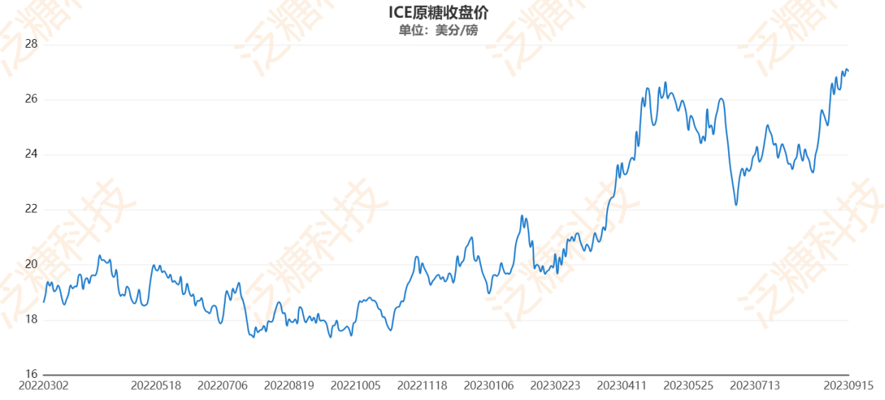 原糖期价本周呈现高位偏强运行态势。周初,原油市场回暖提振商品市场,期价强势反弹突破27美分/磅;而后巴西中南部8月下半月产糖数据公布,累计甘蔗入榨量、产糖量分别同比增加10.9%、20.03%,短期供给充裕现实带动原糖小幅回调;周五,随着原油的强势上行,原糖期价一度创下27.79美分/磅的高点。短期国际糖市仍将围绕巴西供给充裕和印度、泰国减产的现实和预期之间的博弈,或以高位运行为主。