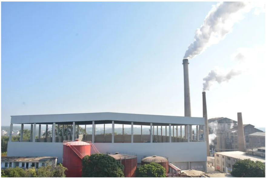 在蓝天白云下,高达六层楼的挡雨棚显得分外壮观,如同一幅生动的画卷。这便是北海糖业新蔗渣堆场的最新面貌。
