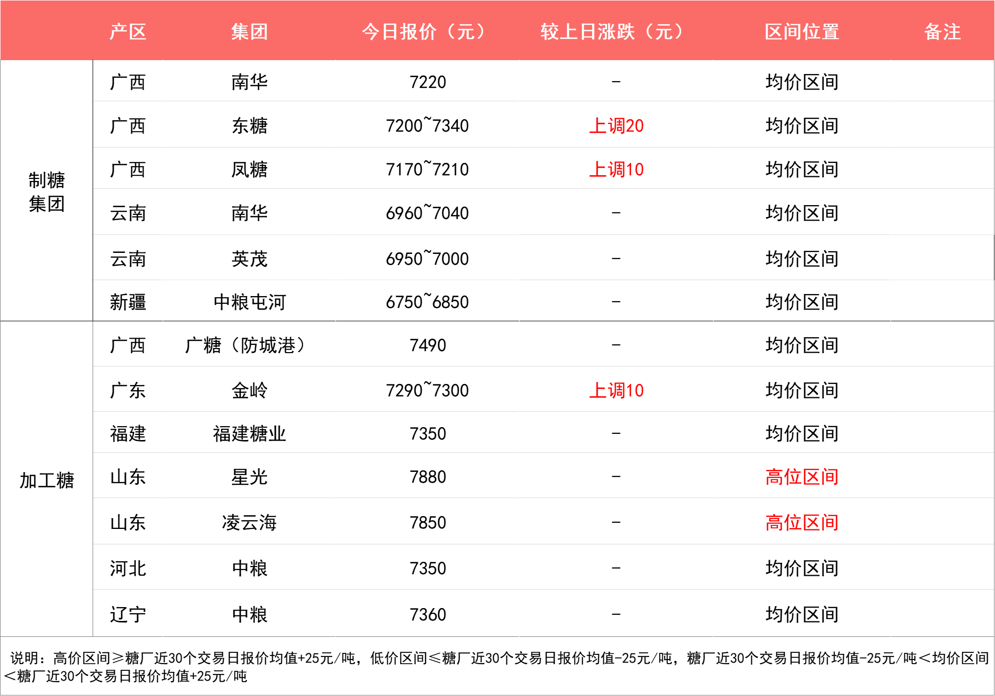 今日广西白糖现货成交价为6938元/吨,上涨3元/吨;产区制糖集团报价区间为6950~7340元/吨,加工糖厂报价主流区间为7290~7490元/吨,糖企报价持稳为主,少数上调10~20元/吨。广西区糖企部分品牌陈糖陆续清库,现货成交略有走量。