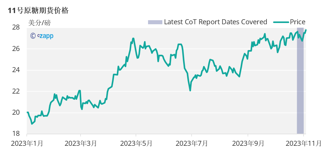 过去一周,11号原糖期货交易价格接近12年高点,接近28美分/磅。
