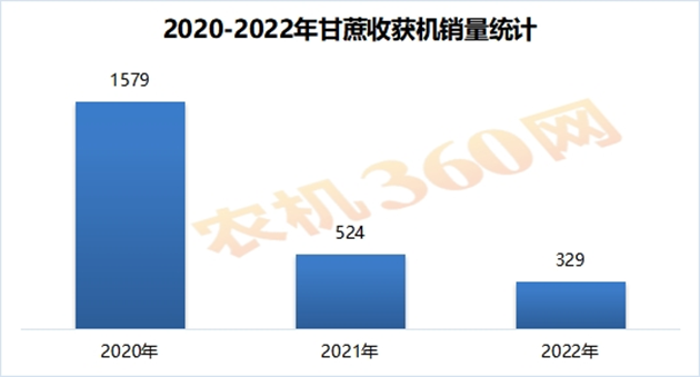 从最近三年的数据来看,我国甘蔗收获机补贴消费市场有所萎缩,2020年补贴销量1579台,2021年是524台,2022年只有329台。截至2023年9月15日,2023年还没有甘蔗收获机的补贴销量数据。从往年情况来看,甘蔗收获机全年都有销售,但以11和12月份为主,今年还没有销量数据,应该与补贴公示进度滞后有关。