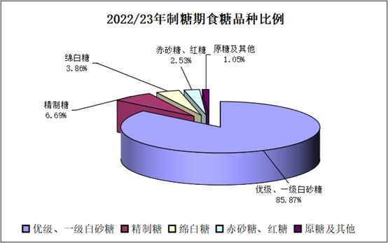 金砂糖:甘蔗经提汁,无硫澄清,蒸发,结晶,分蜜等生产工序所得产品,主要特点是采用低温无硫澄清工艺,最大限度保留甘蔗汁的绝大部分营养物质,是一种高级食品用糖。由于市场需求不大,而且产糖率低,生产量很少。