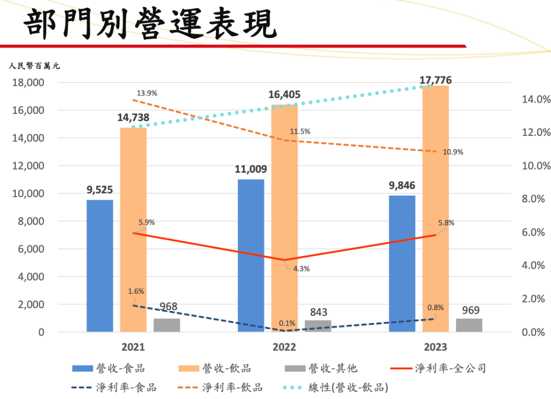 统一2023年饮料业务收益177.76亿元,同比增长8.4%