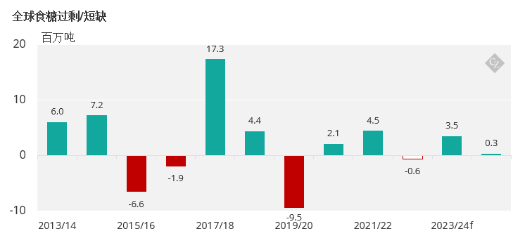 至少,今天全球的食糖库存不再下行,尽管这些库存仍然不均衡,主要分布在巴西、印度和泰国。如果产量能够提高,那么全球食糖库存可以恢复到更舒适的水平。