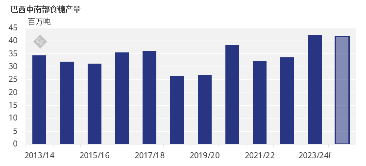 展望未来,我们预计巴西中南部将在 2024/25 年压榨6.1亿吨甘蔗,从而产生4150万吨糖。