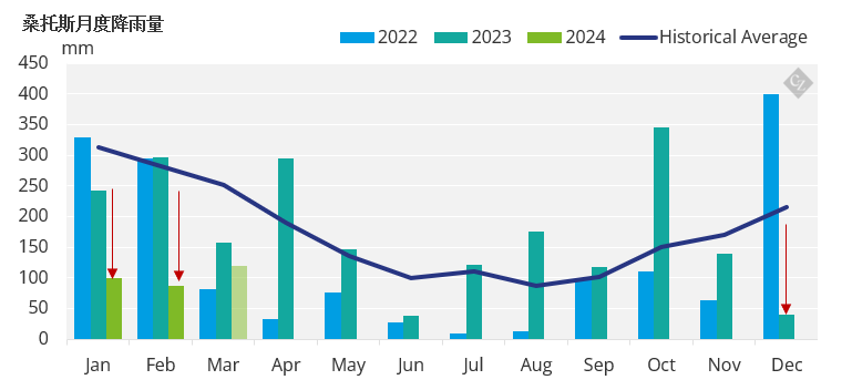 产量下降的主要原因是本季度天气干燥,对农业产量和甘蔗供应产生了重大影响。