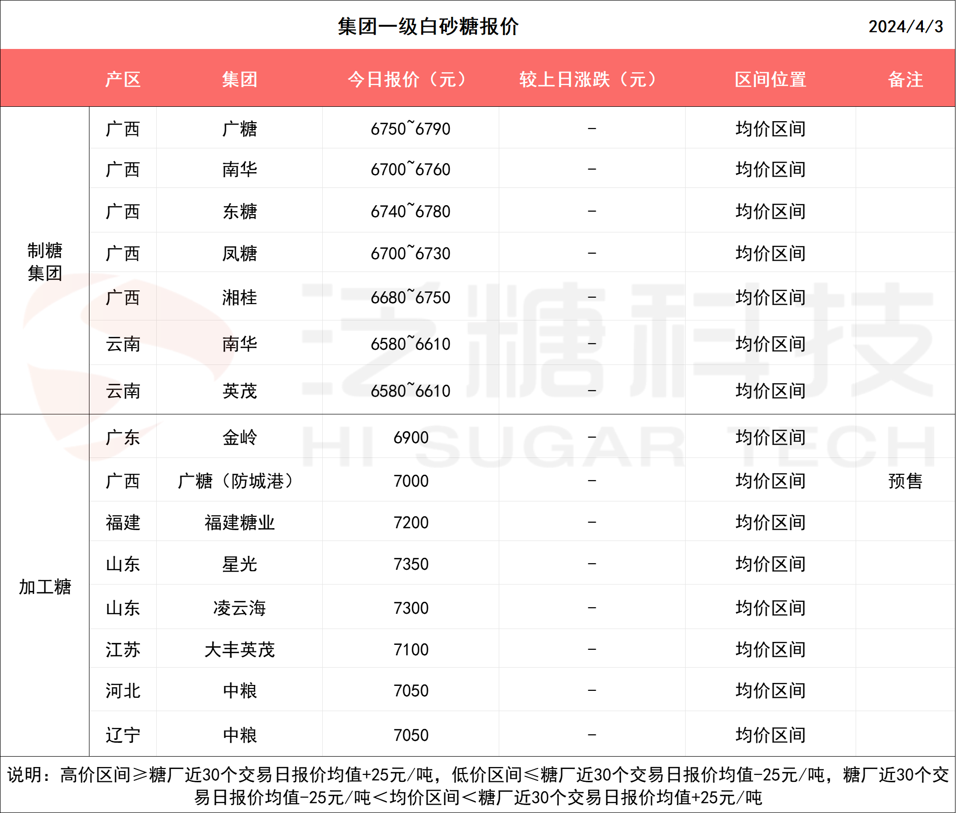 广西制糖集团报价区间6680~6790元/吨,报价与昨日持平。