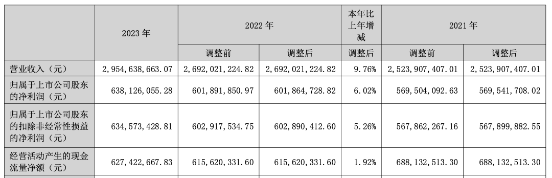 近日,承德露露发布2023年年报显示,该公司实现营业收入约29.55亿元,同比增长9.76%;实现净利润6.38亿元,同比增长6.02%。