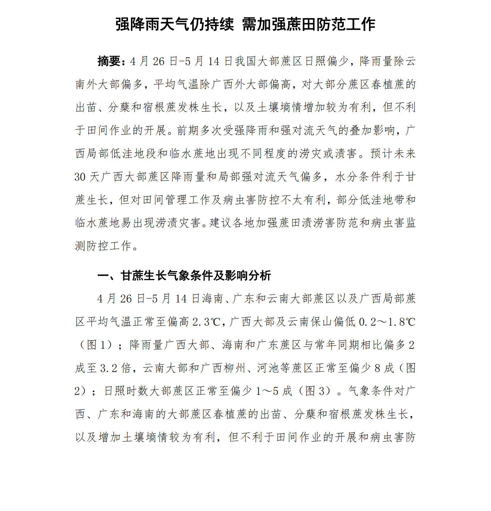 蔗区气象丨强降雨天气仍持续 需加强蔗田防范工作(2024年5月)