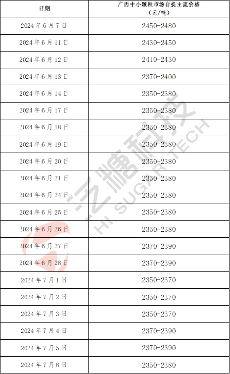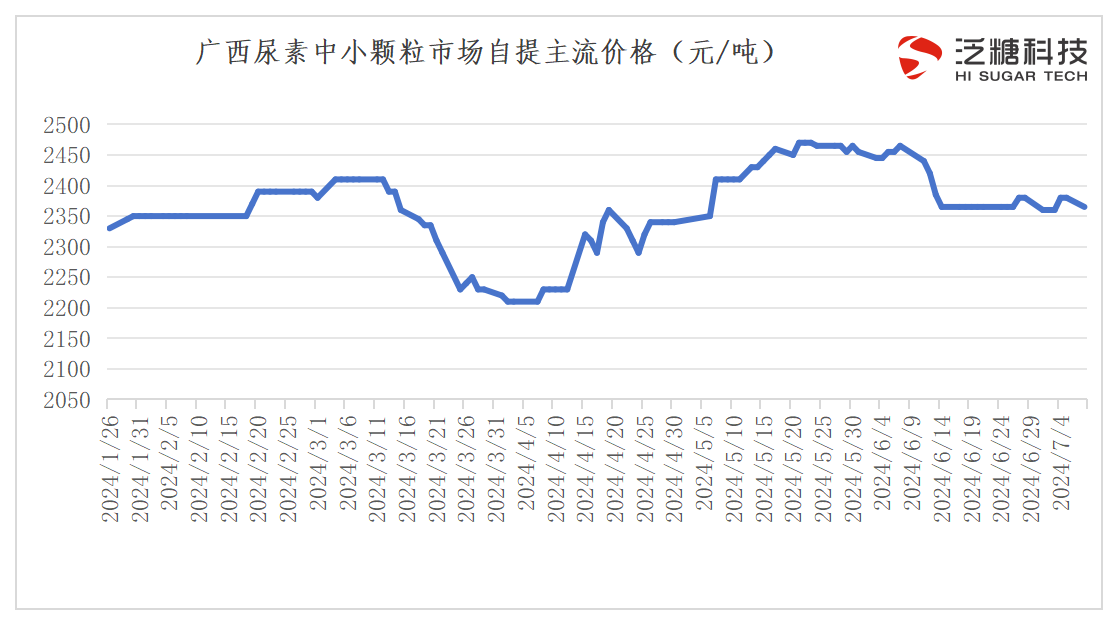 广西尿素中小颗粒市场自提主流价格(2024年6月7日-7月8日)
