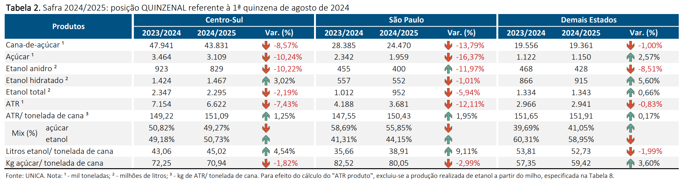 UNICA:2024年8月上半月,巴西中南部地区产糖310.9万吨,同比降幅10.24%
