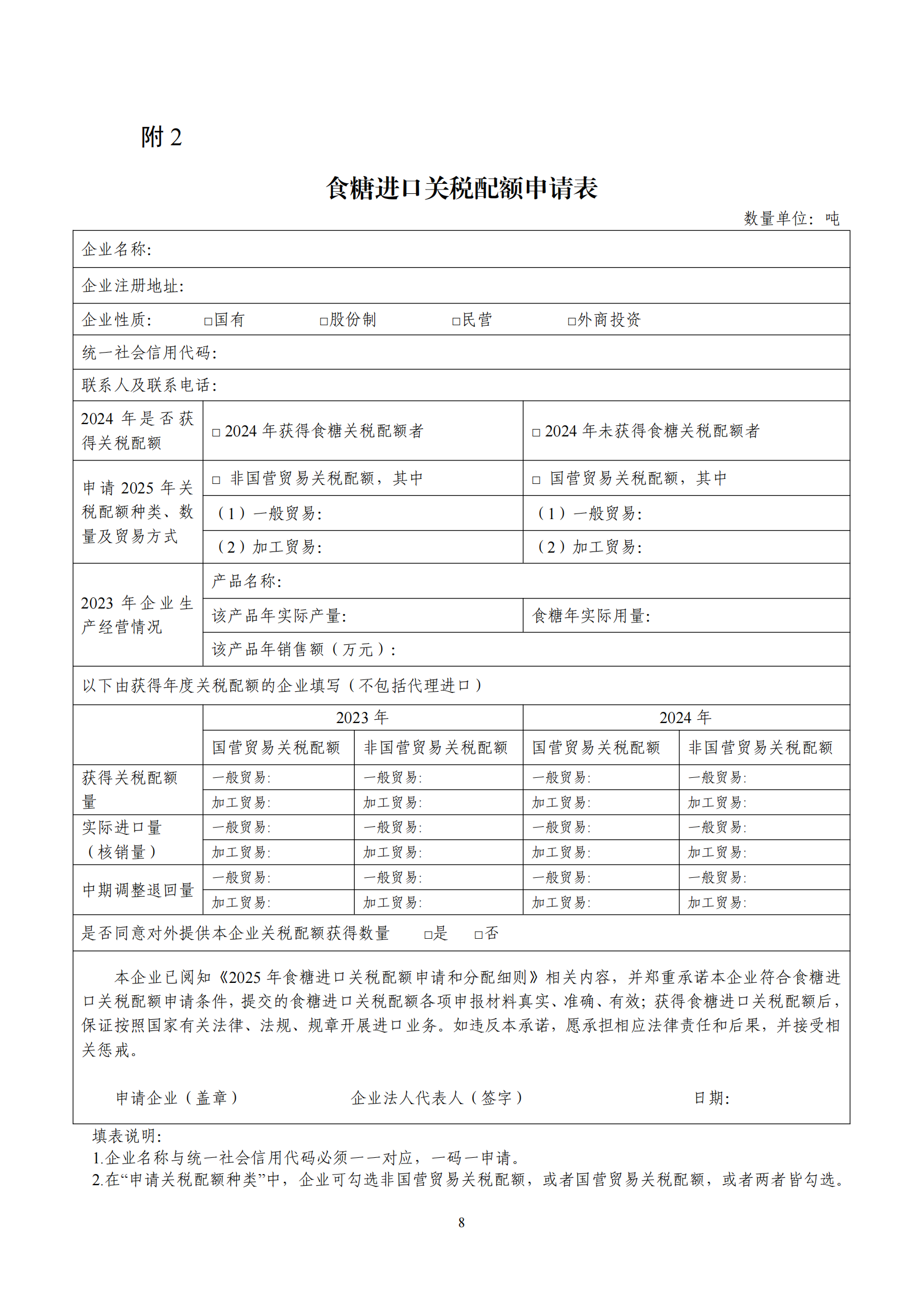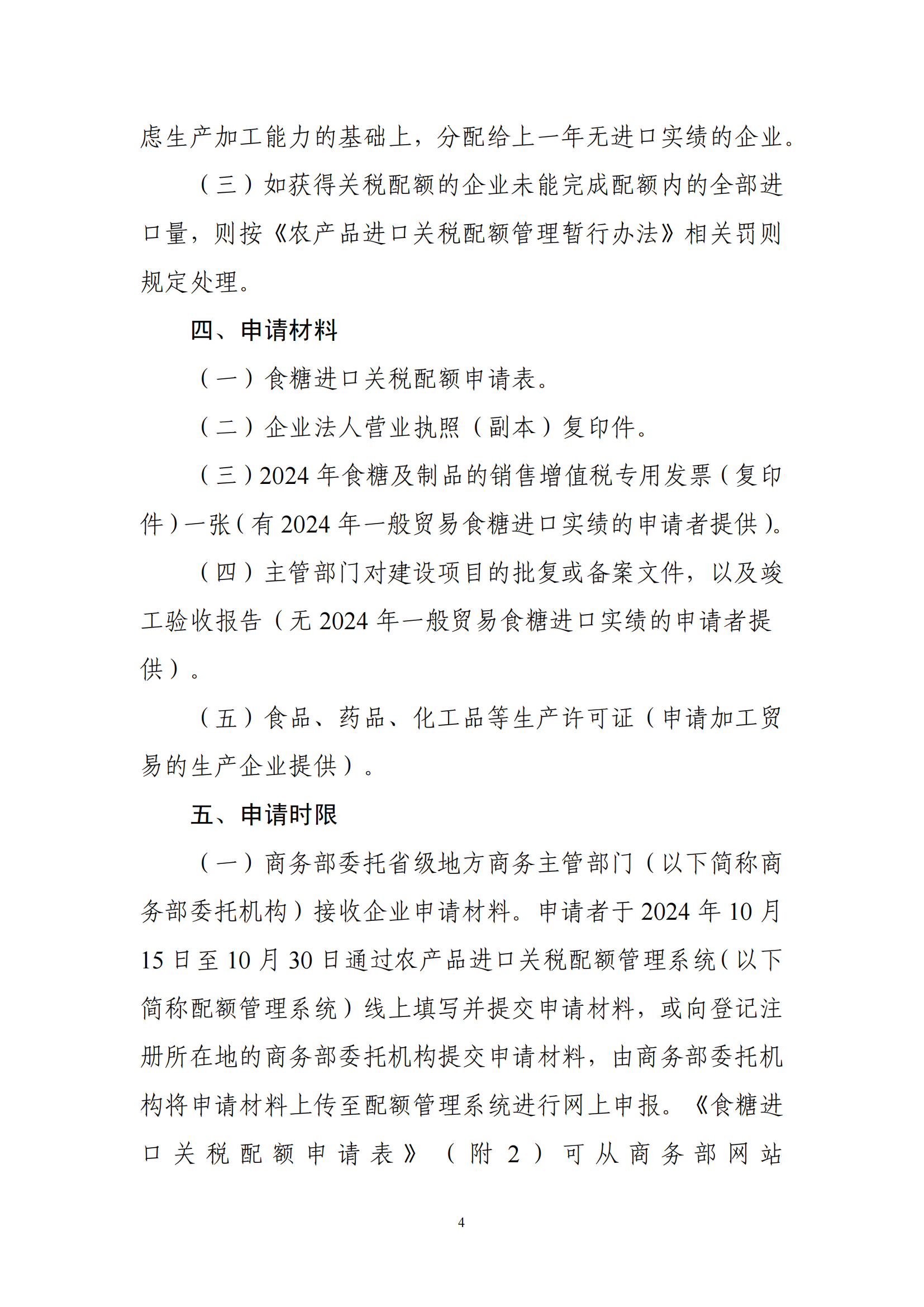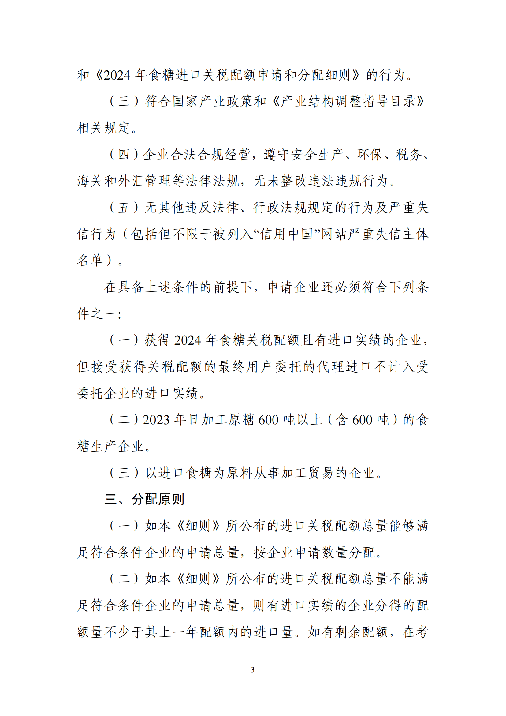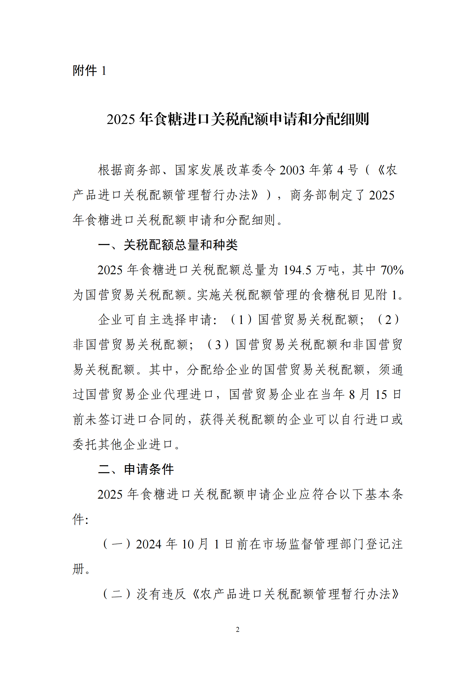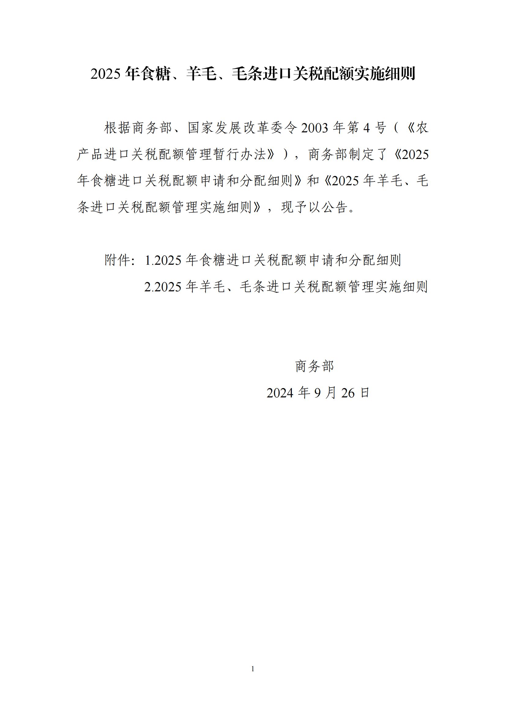 商务部公告2024年第41号 2025年食糖、羊毛、毛条进口关税配额实施细则