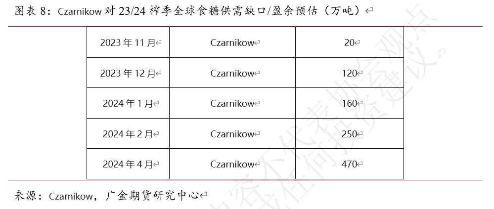 与此同时,ISO还对23/24榨季全球食糖消费量的预估值调降,从而修订23/24榨季全球食糖供应短缺20万吨转为过剩131万吨。