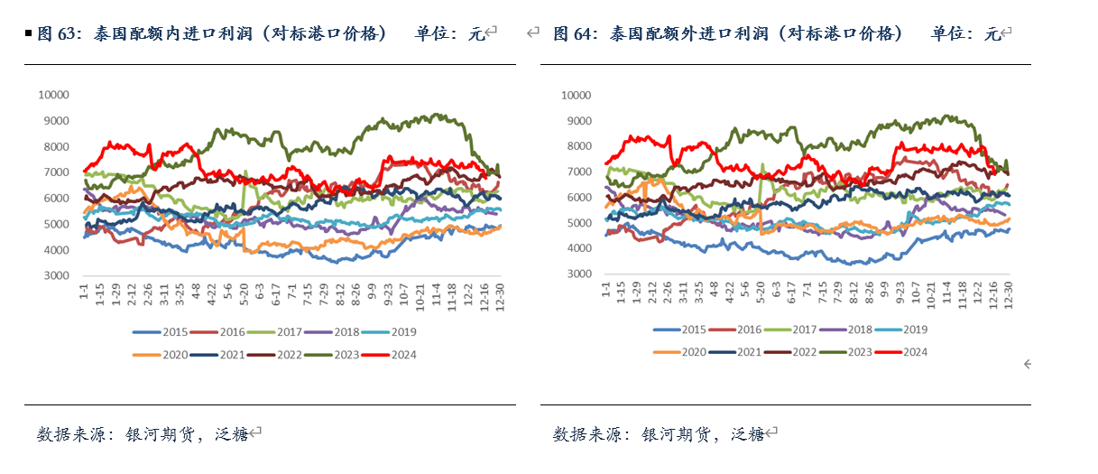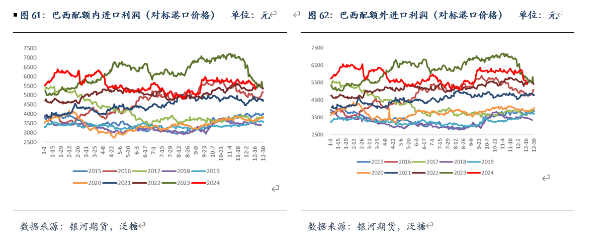 2025年基于我们对外盘走势和国际贸易流格局变化的预估,上半年配额外点价窗口难现,预计下半年随着原糖价格下跌概率的增加,配额外进口成本或有降低可能,从而提振加工糖厂点价积极性。