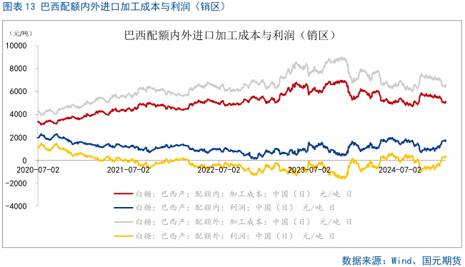 进口利润:中性偏空。近期配额内外进口利润均有回升。