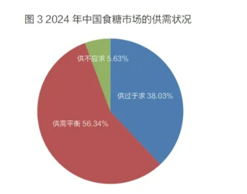 根据调查结果,56.34%的受访者认为2024年中国食糖市场供需平衡,38.03%认为供过于求,5.63%认为供不应求,显示市场对供需持稳健乐观态度(图3)。